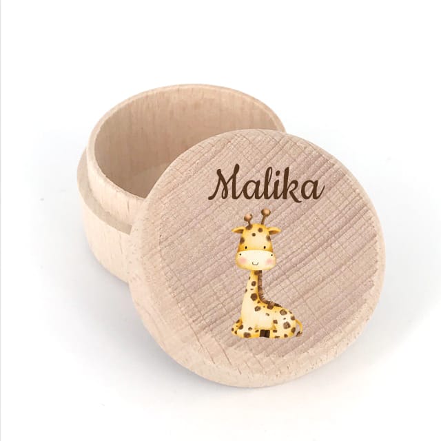 ardez précieusement les premières dents de lait de votre enfant dans cette boîte à dents personnalisée ornée d’une adorable girafe.