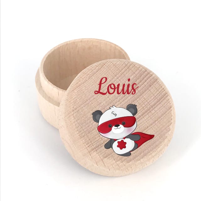Boite à dent de lait en bois personnalisée avec prénom – Super panda